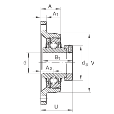 带两个螺栓孔的法兰的轴承座单元,铸铁, 偏心锁圈, L型密封,适合温度从 -40°C 到 +180°C